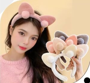 Bando kucing dengan desain lucu dan pom – pom yang lembut, cocok untuk mempermanis penampilan sehari – hari atau acara khusus.